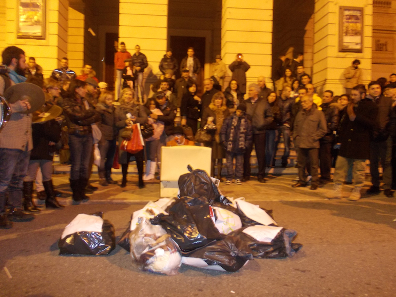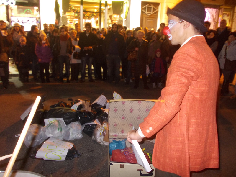 «Riprendiamoci la città!». È stato un gruppo di giovani reggini ad essere scesi sul Corso Garibaldi, ieri pomeriggio durante lo shopping natalizio. Tra il via vai di persone affaccendate nel comprare gli ultimi regali, all’improvviso è apparsa una piccola “rappresentanza” di quei tanti sacchi neri che stanno invadendo la nostra città: Gallico, Ciccarello, Ravagnese, la Vallata del San’Agata e tutti gli altri quartieri che negli ultimi periodi stanno pagando lo scotto di anni di mala gestione dei rifiuti. Una manifestazione di sensibilizzazione organizzata da diverse associazioni che negli anni si sono impegnate sulle varie tematiche connesse a questo ambito, sia per quanto riguarda gli aspetti legati alla salute e alla difesa dell’ambiente, che per la promozione del riuso e del riciclo creativo. I sacchi di spazzatura, su cui era ben in evidenza il nome del quartiere di provenienza, sono stati poi portati in processione per il Corso al ritmo di tamburi e grancasse, fino ad arrivare a Palazzo San Giorgio dove è andata in scena una performance curata dai Pagliacci ClanDestini-Freckles. La piece, tratta dal testo teatrale “Alice nel paese della mondezza” scritto dal Laboratorio “Parco Scenico”, è stata molto apprezzata dai passanti, tanto da essere poi replicata a Piazza Camagna.