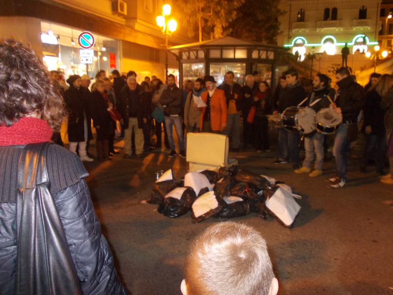 I sacchi di immondizia che stanno riempiendo la nostra città sono anche il simbolo di una crisi sociale e politica, che non può avere risposte altre se non il protagonismo diretto dei cittadini: è questo il messaggio principale che ieri si è voluto lanciare, e che sarà ribadito con altre iniziative attualmente in cantiere.